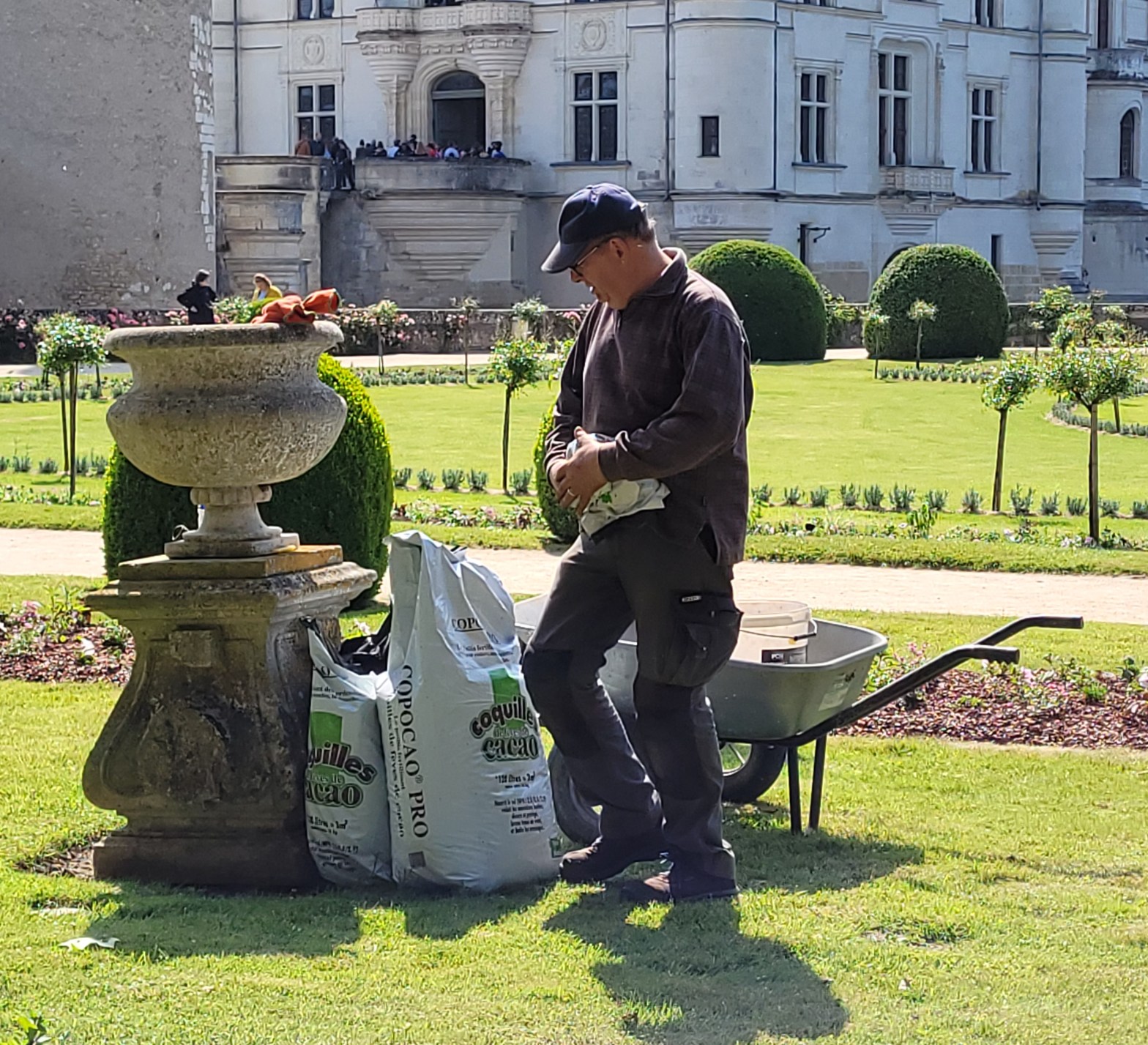 As I was about to leave the gardens, I saw a man leaning over a rose bush while sprinkling something brown around its base. Nearby, leaning up against an ancient stone urn next to his wheelbarrow, were two bags of coquilles caocao. I have had enough French training to know that the bags were full of chicken manure, and he was fertilizing the roses with them. This momentary experience transformed me from a chemical rose grower to an organic rose gardener with much better results. Here’s how I care for my roses now, and they have never been more beautiful.
