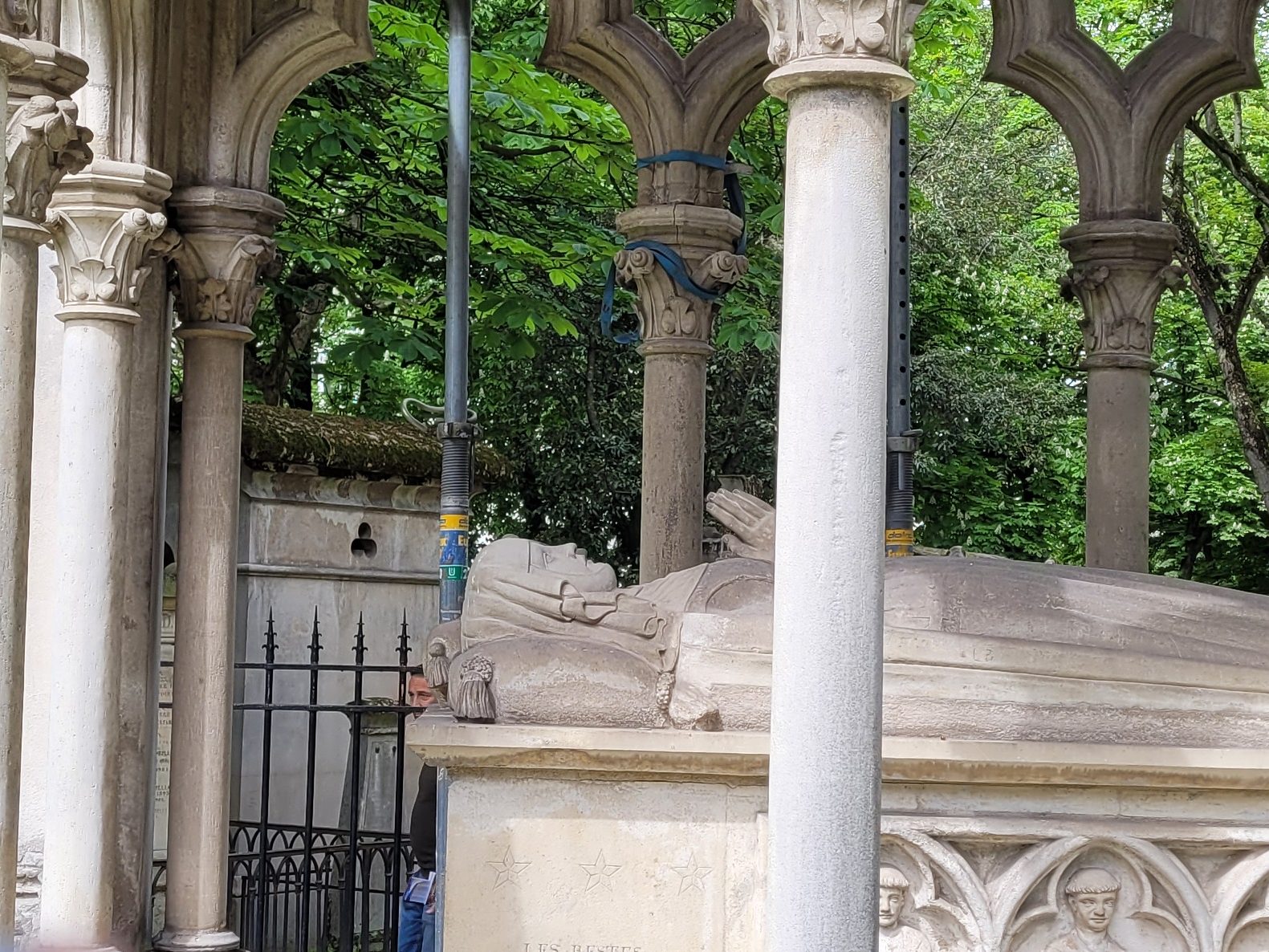 Nearby Pissarro, my map indicated that the 12th century lovers, Héloise and Abélard, were buried, their remains brought to the cemetery in 1817 from Brittany. We found their monument which is an openwork Gothic Chapel from an abbey in southwestern France. Underneath the roof are two reposing statues of the tragic lovers who were forced apart by their families and spent the rest of their lives writing letters of love.